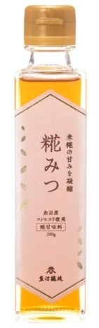 魚沼醸造株式会社が独自の技法(特許出願中)で製造する「魚沼産コシヒカリ使用 糀みつ」は、自然由来の発酵甘味料。砂糖と比べて糖質30%オフ(※開発元、マルコメ株式会社調べ)でありながら、糖度を示すBrix値は米と米糀のみを原料とする甘味料としては業界初の70以上。「新しい甘味料」、「未来の砂糖」として期待されている。